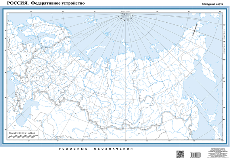 Настенная контурная карта. Россия. Федеративное устройство (с QR-кодом)